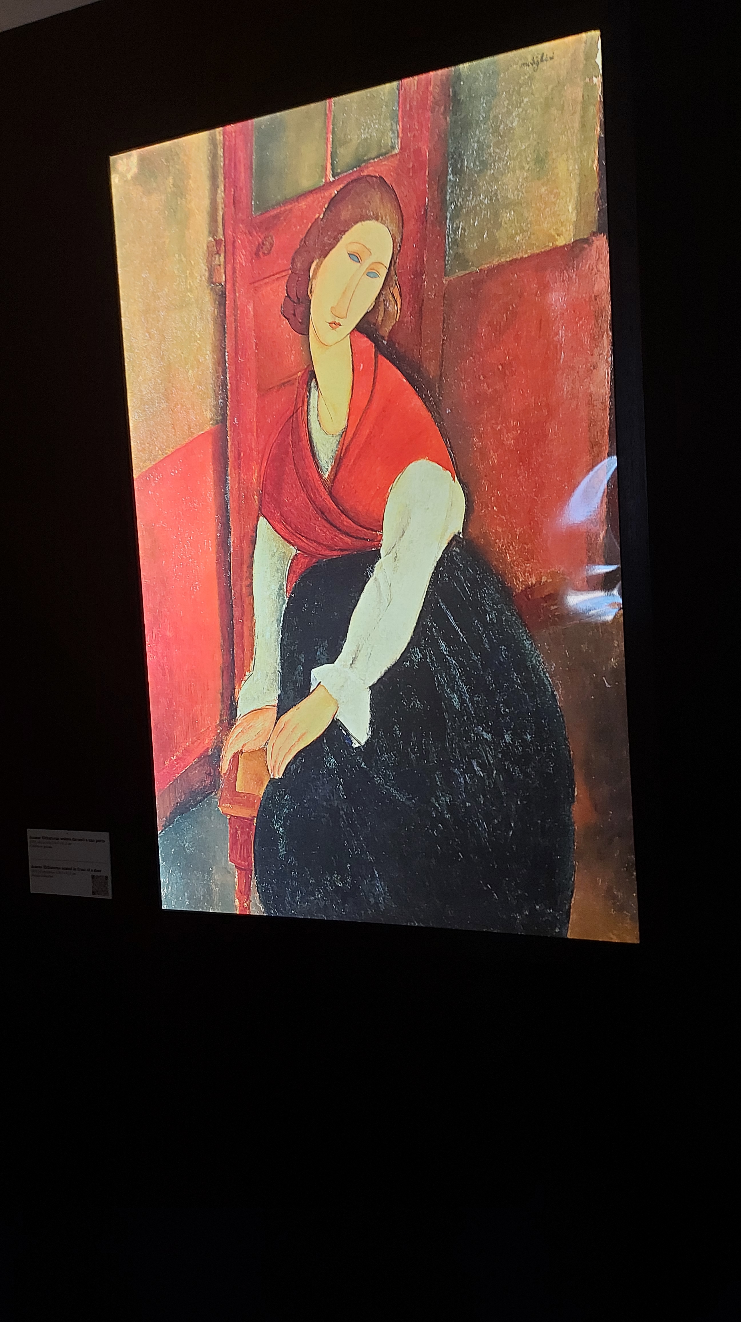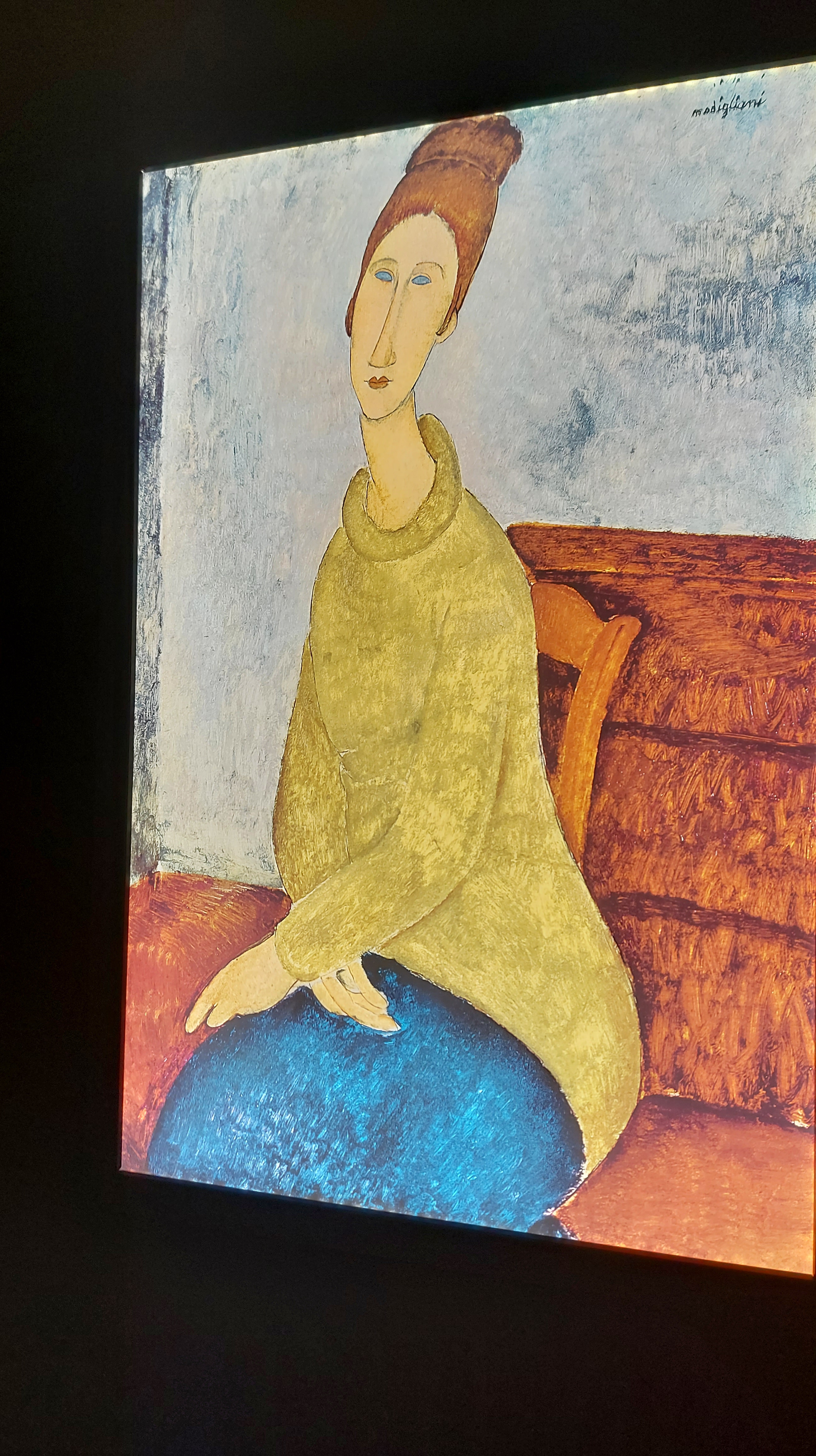 Al primo piano, temporaneamente, gli occhi azzurri e i lunghi capelli neri di Jeanne, protagononista di una ventina di opere di Modigliani, con le sue linee nitide, le curve morbide ed il fascino misterioso della figura dal collo lungo e dagli occhi privi di anima.
