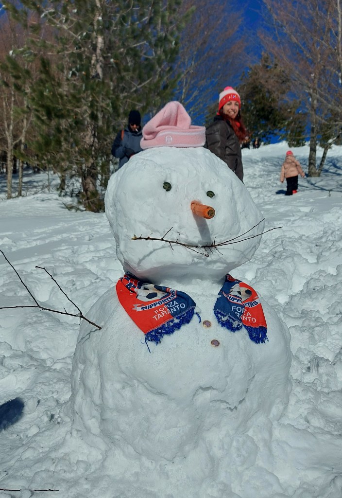 Ho costruito “Scheletrino” e con Marco abbiamo plasmato un pupazzo di neve bellissimo, che per poco ha indossato il mio cappello, mentre Marco lo ha avvolto con la sciarpa del Taranto.
