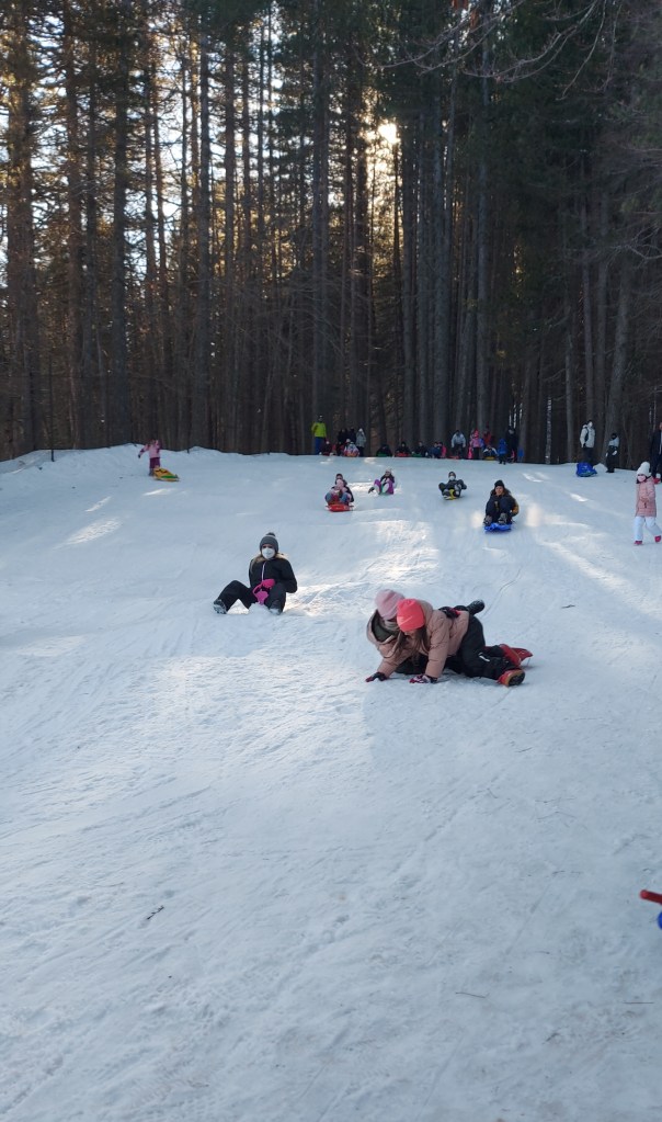 Allora, fornite di slittini abbiamo cominciato scivolare giù dalla cima, più e più volte, rotolando ripetutamente.