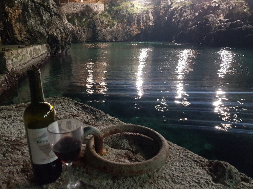 I locali sul porto di Castro marina non sono aperti ma poco male. Siamo entrati in un negozio di generi alimentari, abbiamo acquistato alcuni salumi e formaggi, una bottiglia di vino ed il nostro aperitivo, vista mozzafiato, era servito.