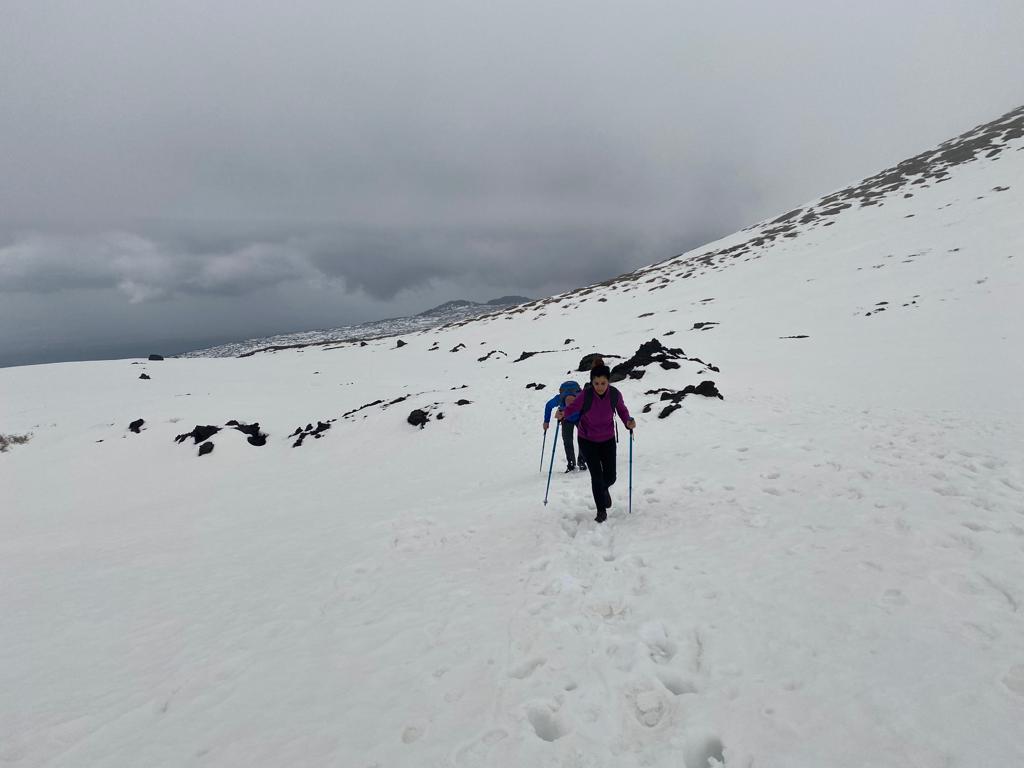 La mattinata è iniziata con un trekking a lungo desiderato quello sull’Etna, il gigante rispettato e amato da tutti a Catania.