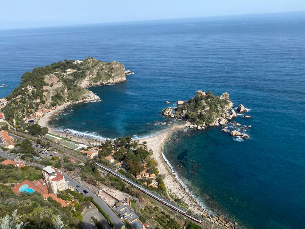 Anche ad uno sguardo fugace, mentre si sale verso la città è ben visibile l’isola Bella. Un luogo unico, considerato uno dei luoghi storici e naturali più suggestivi di tutta la Sicilia. Questa splendida e variopinta località è collegata alla terraferma con una sottile striscia di sabbia, che la rende raggiungibile anche a piedi.