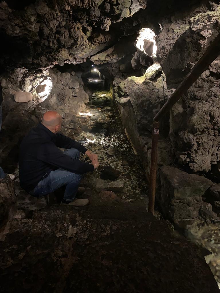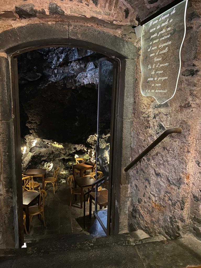 Nelle cantine dell’Ostello di Agorà è possibile ammirare il corso d’acqua, all’interno di una grotta lavica naturale, sorseggiando un calice di vino.