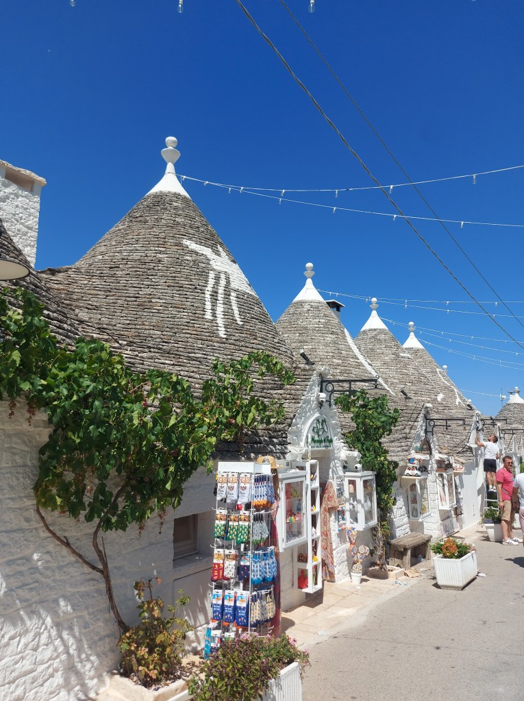 Prima tappa Alberobello, il villaggio costituito da abitazioni in pietra a secco, senza malta, con i tetti dalle silhouette coniche e fiabeschi. Difatti ai Trulli si associano, ancora oggi, significati esoterici e mistici.