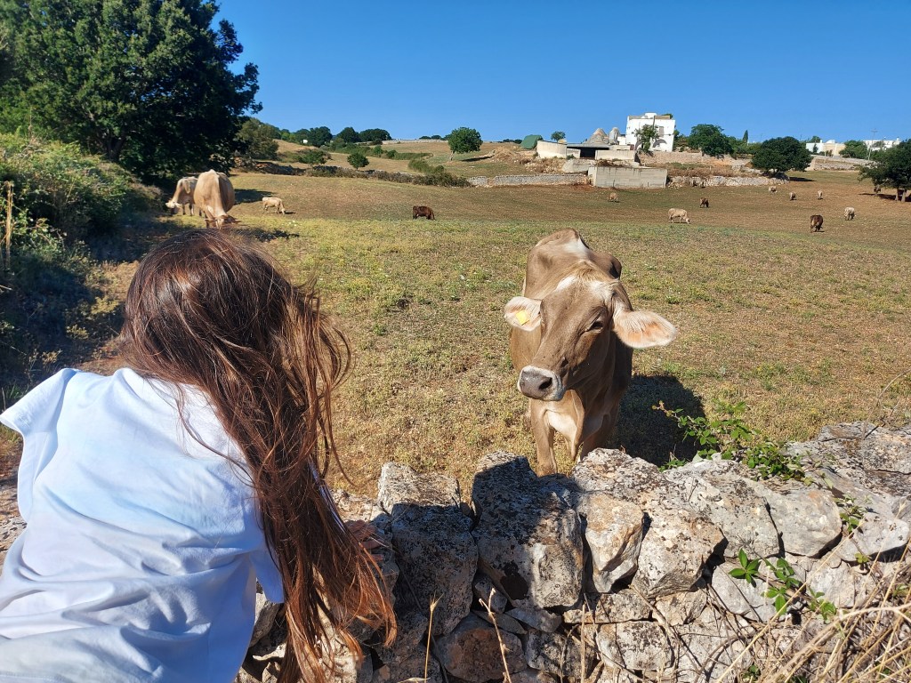 Capita spesso durante l’estate che il maestrale soffi forte e diventa difficile stare in spiaggia, così si siamo allontanate dalla costa e ci siamo rifugiate nella Valle D’Itria, stregate dalle infinite distese di ulivi spesso delimitate da muretti a secco, dalle verdi campagne avvolte dal silenzio e dai trulli che sorgono qua e là.