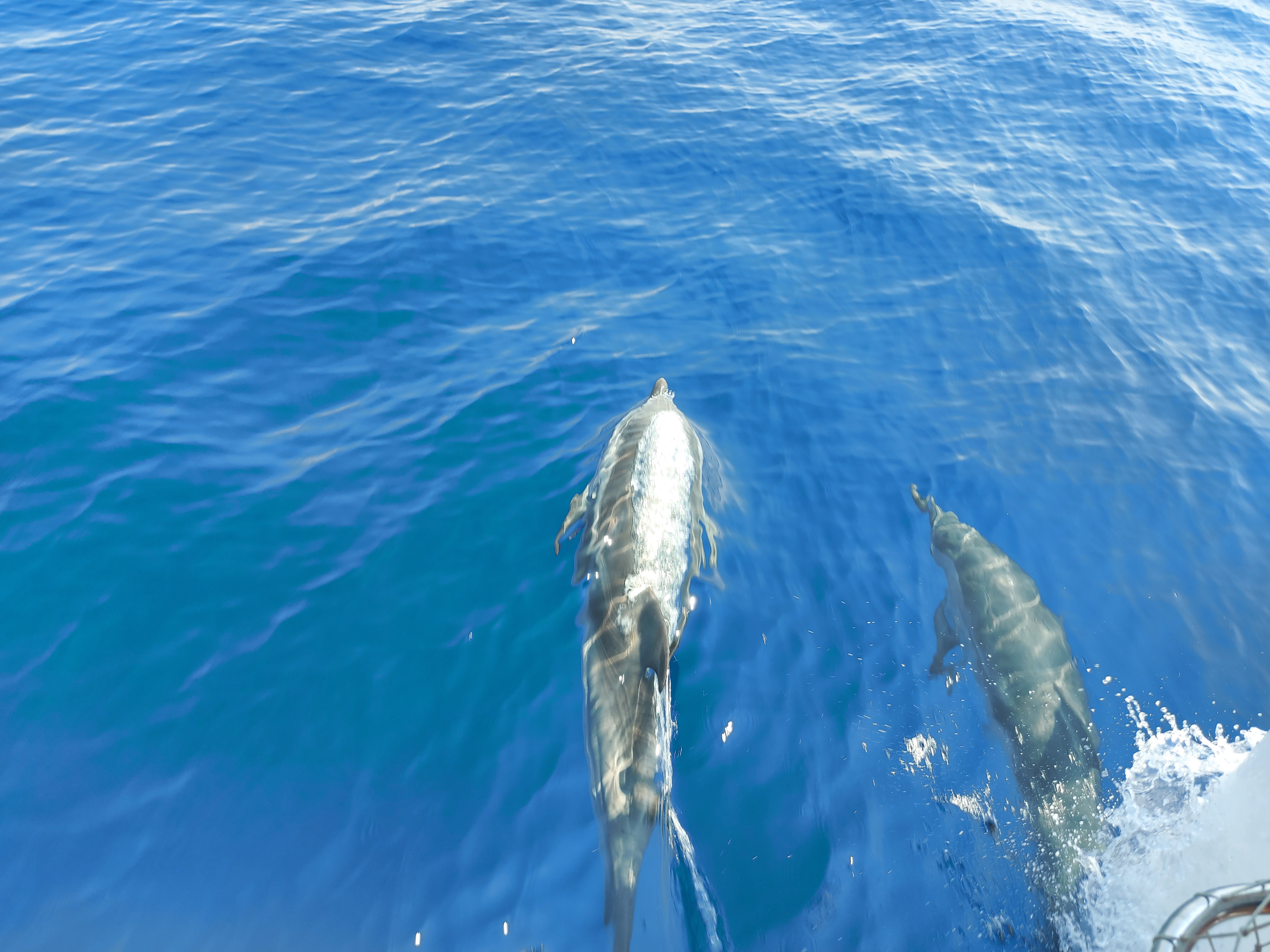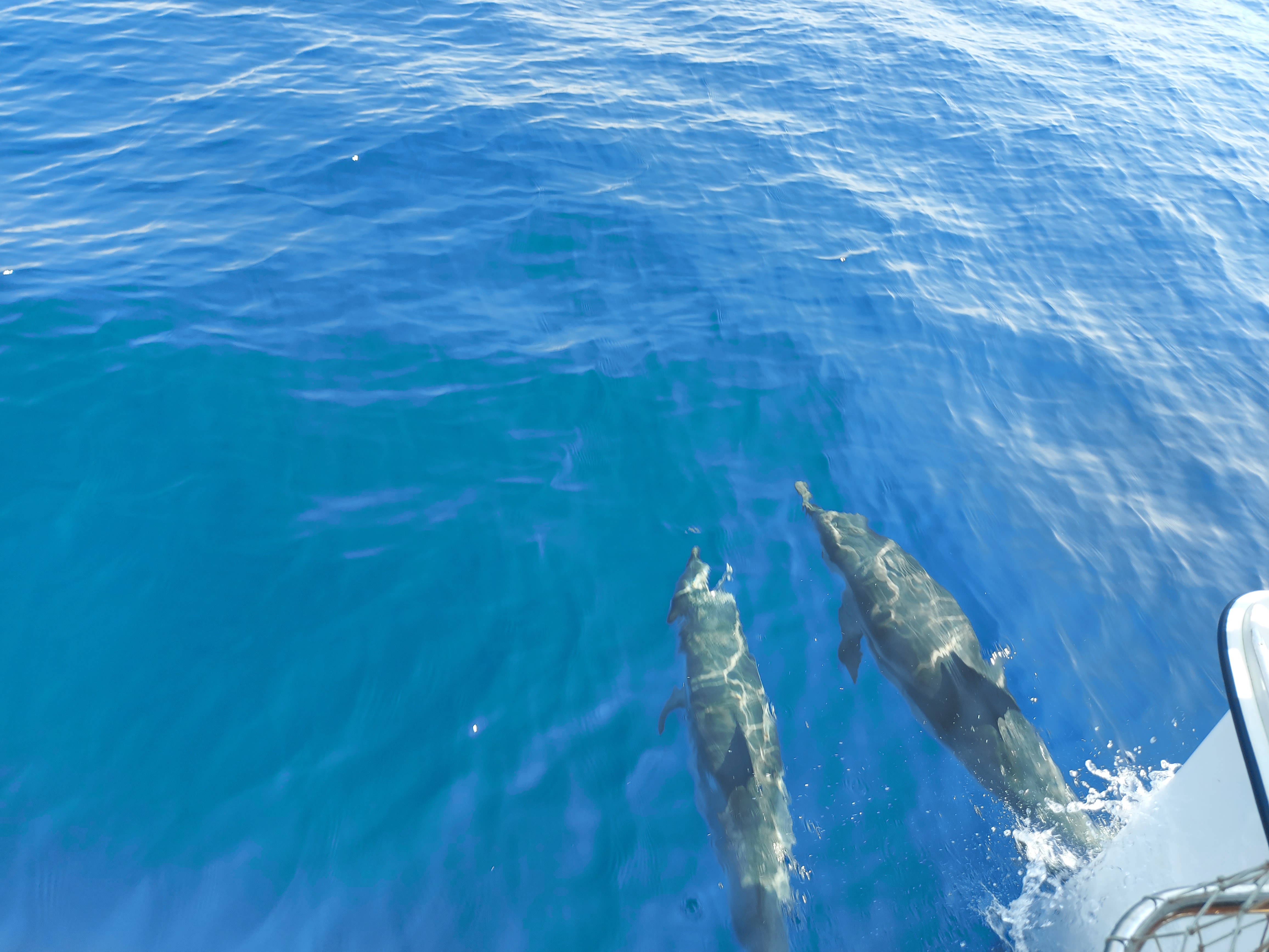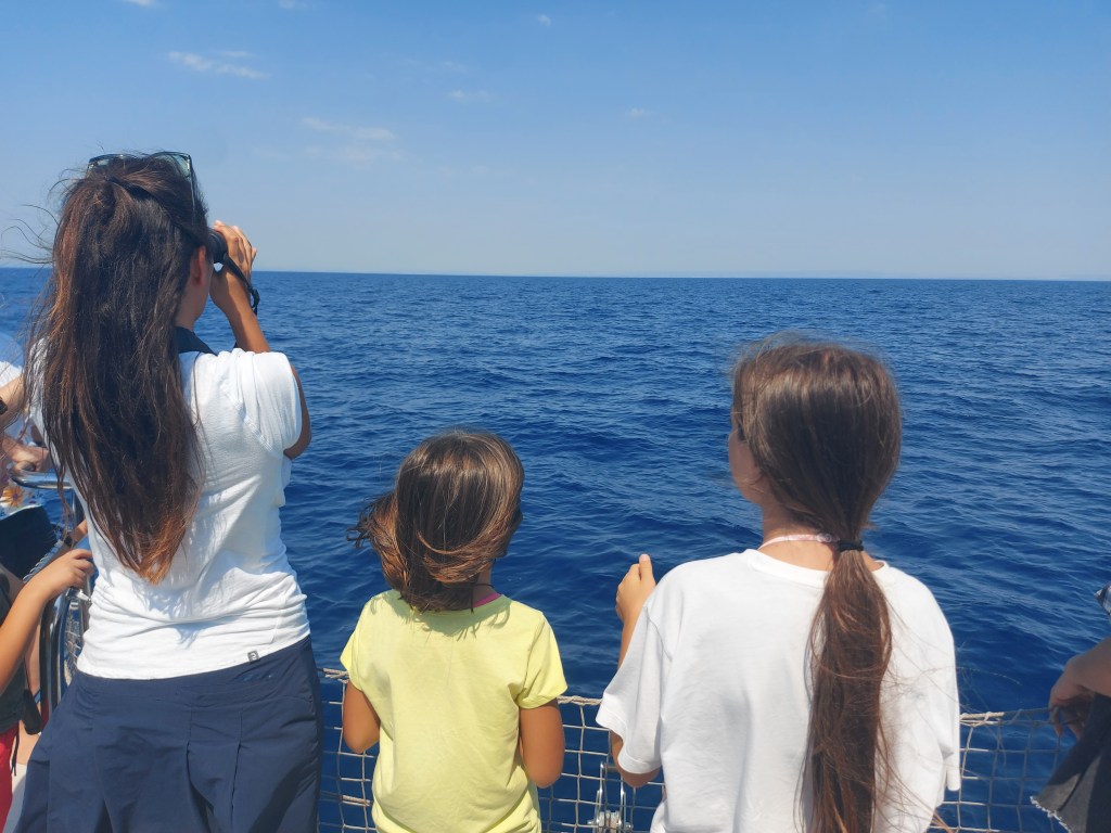 Siamo salpati dal molo S. Eligio, navigando nelle tranquille acque del Mar Grande e, mentre i ragazzi ci spiegavano le loro attività, siamo arrivati in mare aperto. La costa non si vedeva più. Le biologhe con i loro binocoli aguzzavano la vista alla ricerca di una pinna. Eravamo ormai rassegnate a non vederli, ma all’improvviso una di loro indicava la rotta al comandante. Aveva visto un balzo!