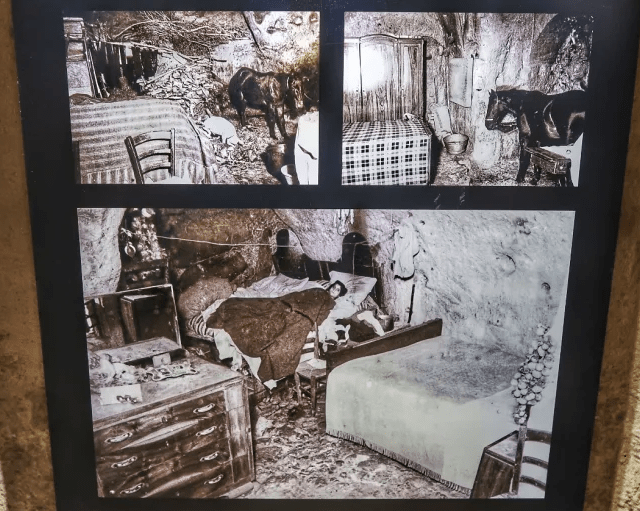 La storia ci narra che i Sassi, fino agli anni ’50, sono stati il simbolo del degrado sociale, un cratere in cui uomini e donne vivevano all’interno di grotte insieme agli animalI, in una situazione di totale assenza di salubrità. Carlo Levi fu tra i primi ad accendere i riflettori sulla città e a scuotere le coscienze.