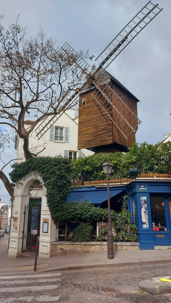 Lasciata Place des Abesses, abbiamo imboccato Rue Lepic. La notevole ripidità di questa strada non lasciava dubbi, stavamo percorrendo la famosa collina di Montmartre. Intravediamo il Moulin de la Galette, un vecchio mulino che sembra dipinto. In realtà si tratta di due mulini che, ad inizio ‘800, la famiglia Debray utilizzava per produrre la farina o pressare il raccolto.