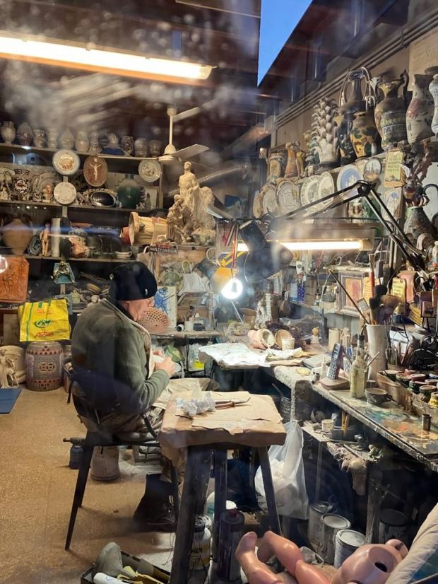 Avevo letto che trattasi un’officina storica che produce e ripara bambole, dal 1939. Avevamo immaginato un luogo di pura poesia, con tantissimi occhi di bambole di tutti i colori, ma anche braccia e gambe, i cosidetti pezzi di ricambio. Immaginate la nostra delusione nel vedere un restauratore poco incline, in quel momento, a spiegare perchè non ci fosse un reparto ospedaliero di bambole.