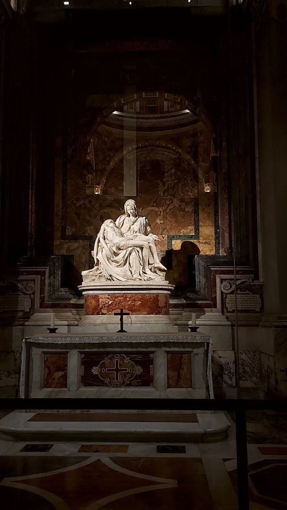 Superati i dovuti controlli, abbiamo varcato questo scrigno, dove sono conservate opere d’arte dal valore impareggiabile come la Pietà di Michelangelo, la Cupola di Michelangelo e, lungo la navata centrale, il Baldacchino di Bernini. La Basilica di San Pietro è incantevole, immensa e affascinante allo stesso tempo.