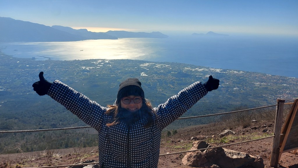 Il giorno dopo dovevo mantenere una promessa fatta a Giada e siamo state al Gran Cono del Vesusio. E’ stato veramente bello ed emozionante.