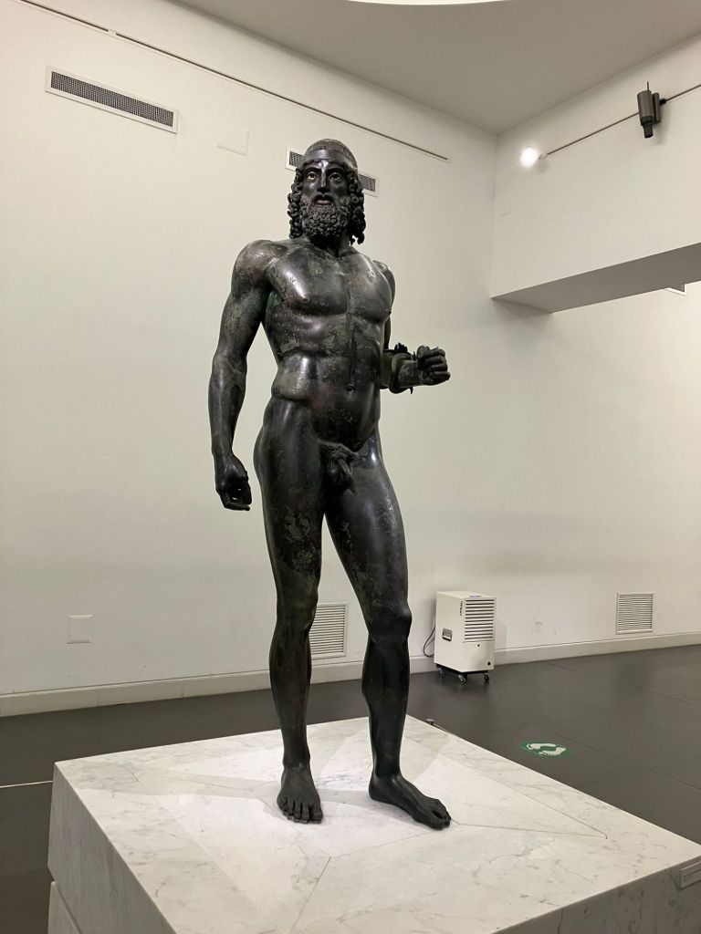 Dal Castello ci siamo diretti a Pentadattilo (che ha un racconto tutto suo-https://rondinelleinviaggiofamily.blog/2025/02/01/pentedattilo-alla-ricerca-della-felicita/) e siamo scivolati verso Reggio Calabria per “conoscere” i Bronzi di Riace, esposti al Museo Archeologico Nazionale. Ritrovati in mare nel 1972 da un sub romano, i Bronzi raffigurano due uomini nudi, giovani e forti, risalgono probabilmente al V secolo a.C.