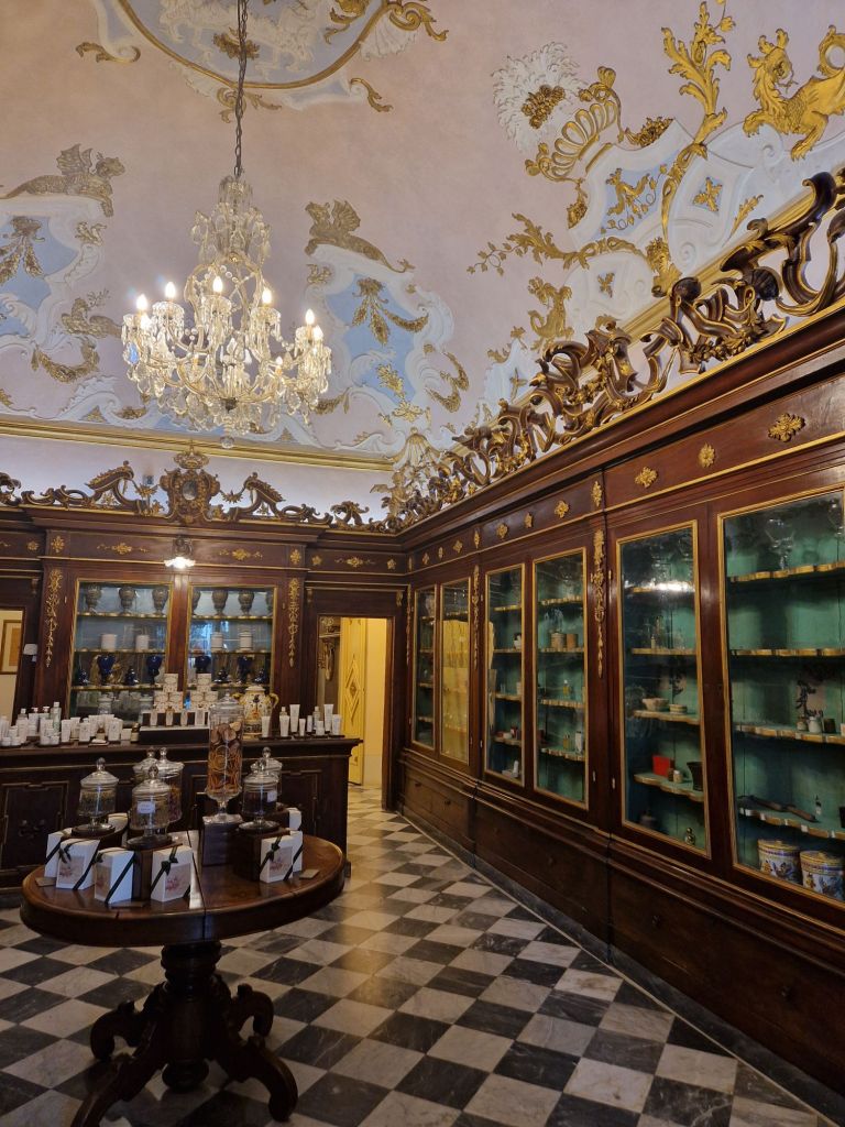 Gli ambienti sono molto suggestivi: i soffitti sono decorati con affreschi della prima metà dell’Ottocento, i pavimenti in marmo risalgono al 1840 e le stanze sono decorate con vasi originali del 1600. Un luogo veramente inebriante e magico.