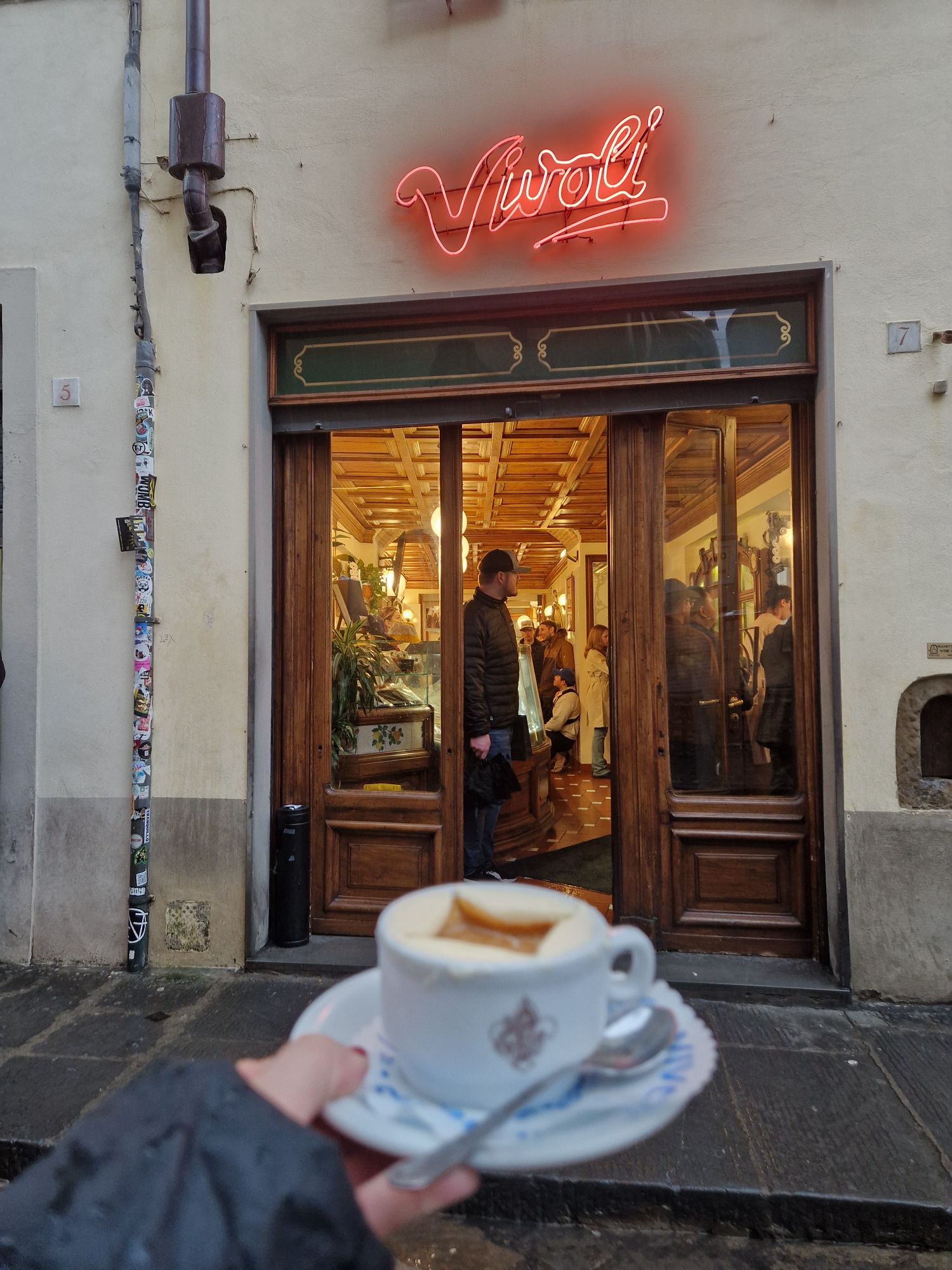 Non poteva mancare un cremoso affogato al caffè in tazzina vintage bianca e blu, della gelateria Vivoli, diventato virale, a seguito di una campagna pubblicitaria del fotografo Sam Youkilis.