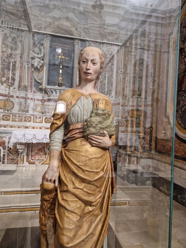 La Cattedrale della città risale al 988 ed è stata oggetto di più ricostruzioni. Molti sono gli elementi preziosi della chiesa, ma su tutti spicca la scultura di Santa Eufemiain pietra. Si presenta con una mano nelle fauci del leone come simbolo del martirio, mentre nell’altra sorregge un triplice monte sormontato da un castello che rappresenterebbe proprio Montepeloso. È un pezzo raro attribuito al Mantegna e giunto a Irsina grazie alla ricca donazione di un notaio originario di queste parti.