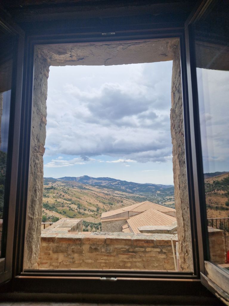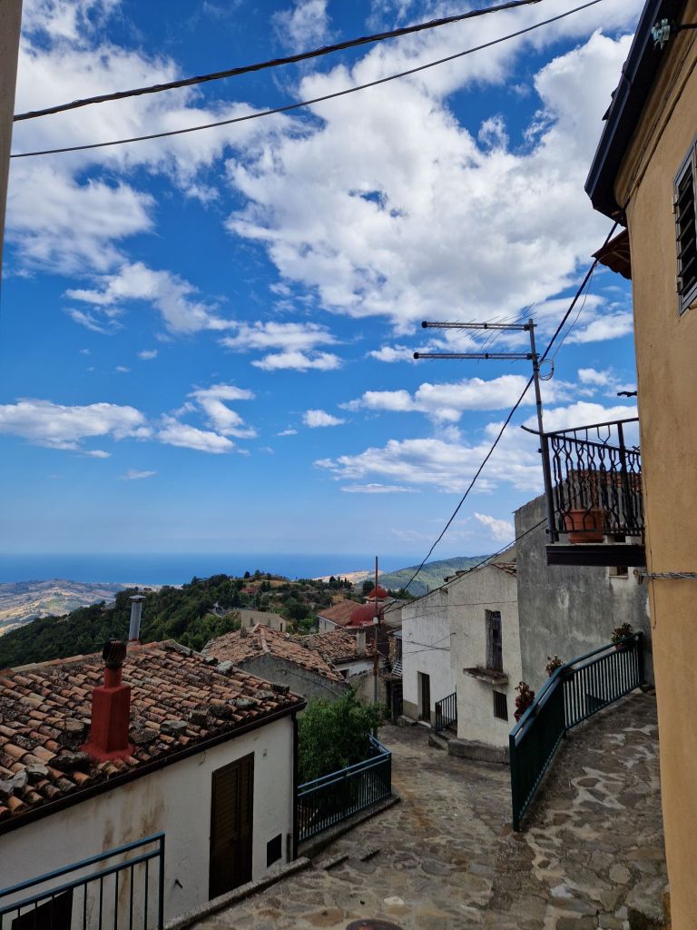 Da Oriolo ci siamo spostati in cima a una delle terre più antiche e autentiche della Calabria, qui il tempo non ha fretta e la bellezza si misura con il silenzio. È Castroregio, borgo arbëresh incastonato tra rocce, cielo e vento, dove la storia cammina ancora tra i vicoli e la natura abbraccia ogni cosa. Dal belvedere lo sguardo attraversa vallate, segue le pieghe del terreno, accarezza le cime delle montagne, fino a toccare il blu del Mar Ionio.