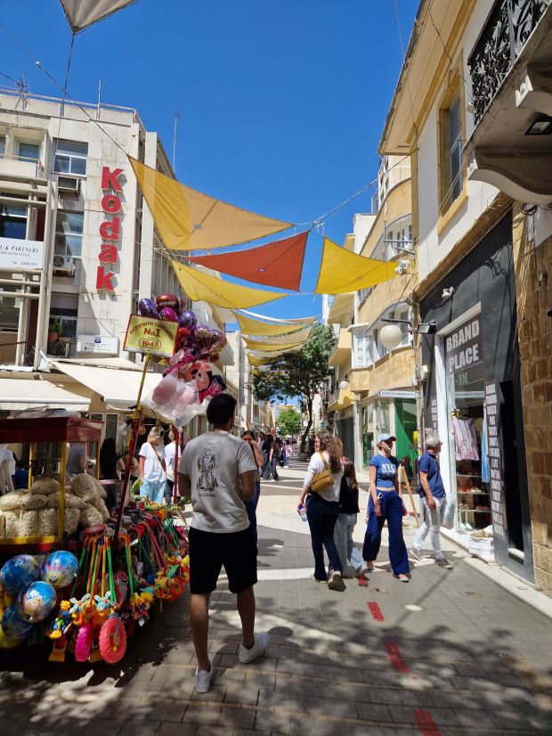 La parte greca di Nicosia è abbastanza moderna, il centro storico all’interno delle mura è un dedalo di vie che convergono in via Lidras, una lunga via pedonale piena di negozi e locali che porta al check point.