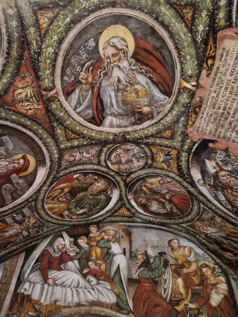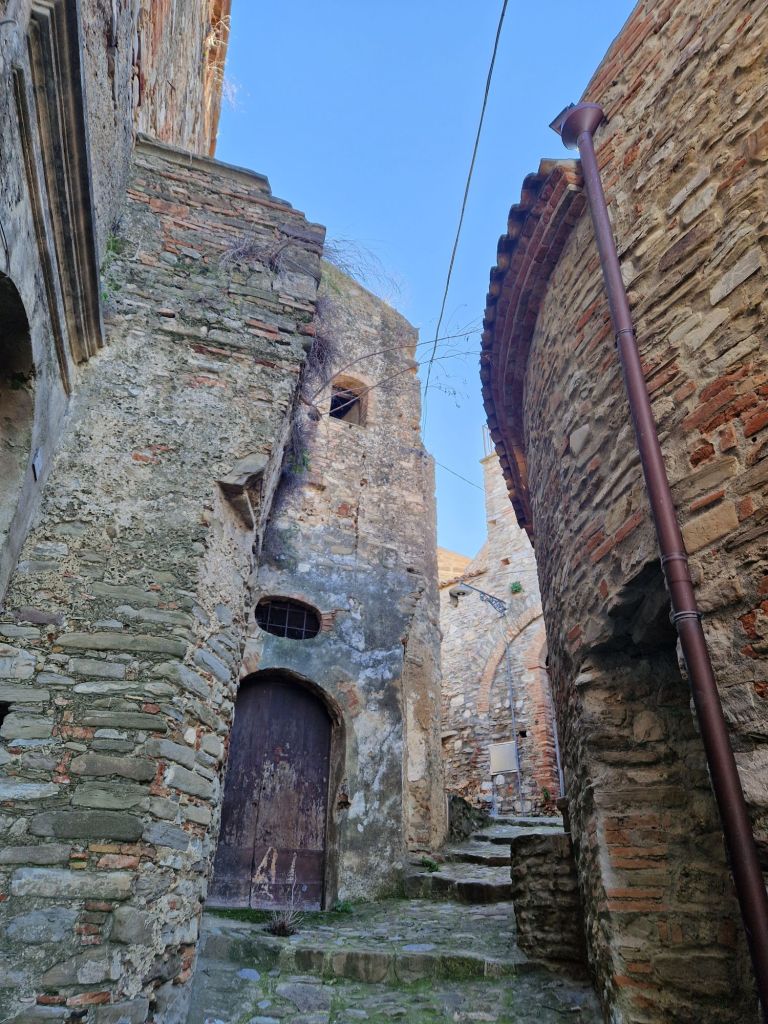 Nella parte più antica, oggi disabitata, si trova la chiesa di Santa Maria Maggiore, edificata nel Cinquecento sulla primitiva chiesa, costruita dai monaci basiliani nel IX secolo. La chiesa conserva vere e proprie opere d’arte tra le quali un trittico di fine ‘300 con al centro la Madonna col Bambino in trono, attribuita ad un autore fiorentino della scuola di Giotto. All’interno della cripta, decorata da splendidi affreschi, si può ammirare l’incantevole presepe in pietra scolpito attorno al 1550 dallo scultore Altobello Persio (1507-1593). È il risultato di un accurato lavoro attraverso il quale l’autore ha plasmato la materia per dare forma e colore alla Sacra Famiglia.