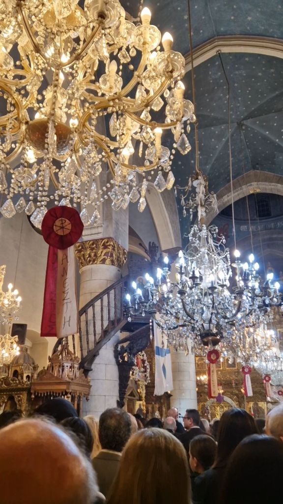 La cerimonia culmina a mezzanotte, quando il sacerdote ortodosso bussa alla porta maggiore della chiesa per poi spalancarla, intonando l’inno della resurrezione. Annuncia a gran voce Christos Anesti (Cristo è risorto!), mentre i presenti rispondono in coro Alithos Anesti (E davvero risorto!). Siamo ritornati a casa, portando con noi la luce Santa e ci siamo raccolti intorno alla tavola.