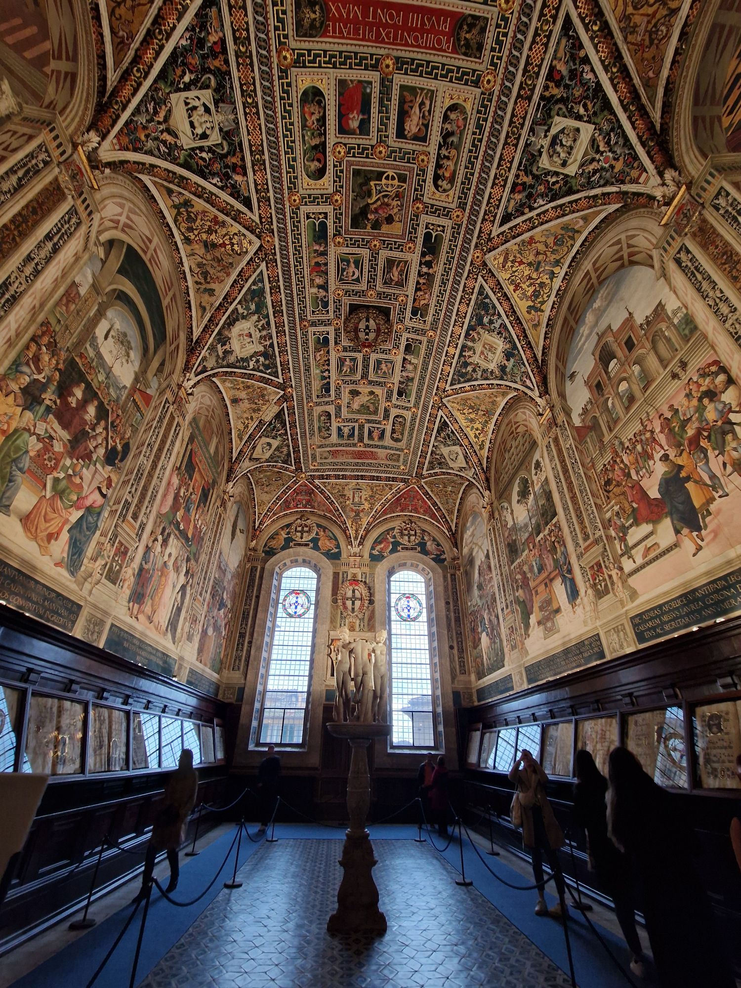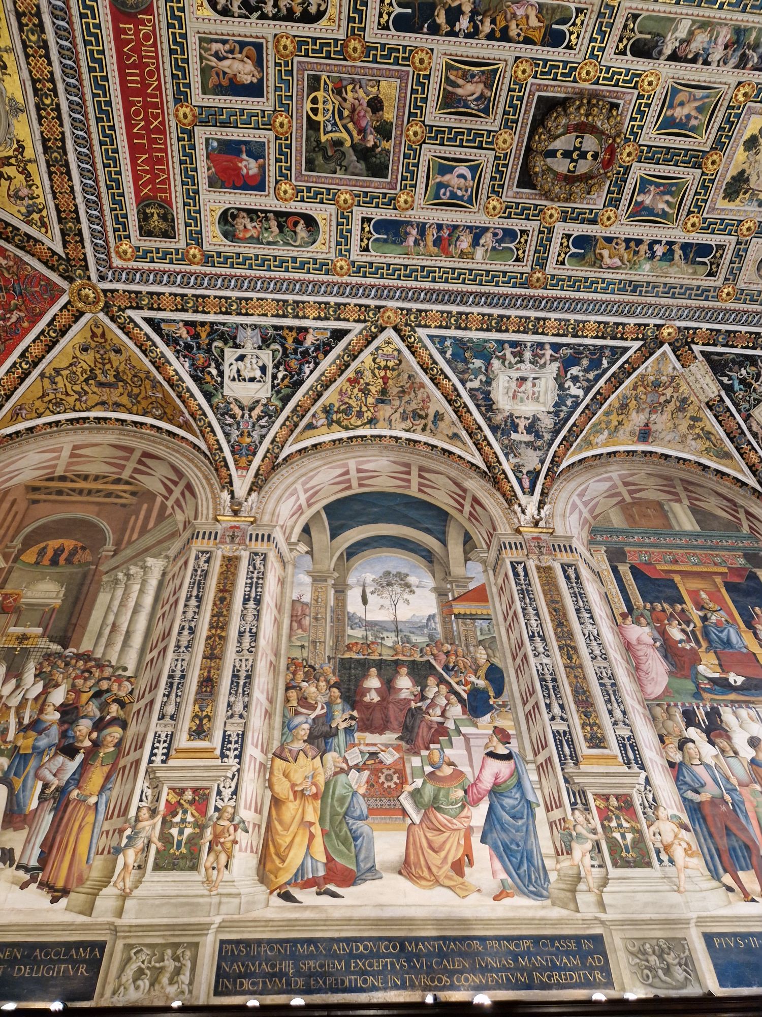 Piccolo gioiello da visitare all’interno del Duomo è la Libreria Piccolomini. Qui, oltre ai libri antichi, si possono ammirare gli affreschi realizzati da Pinturicchio e Raffaello agli inizi del Cinquecento. Sulle pareti sono rappresentati alcuni momenti della vita di Papa Pio II, a cui è dedicata la sala.